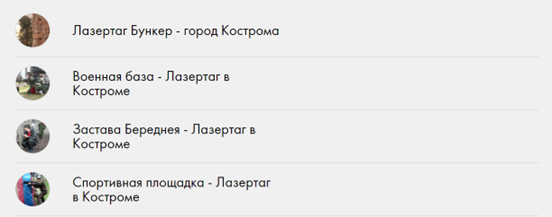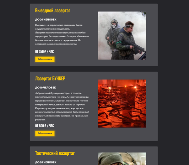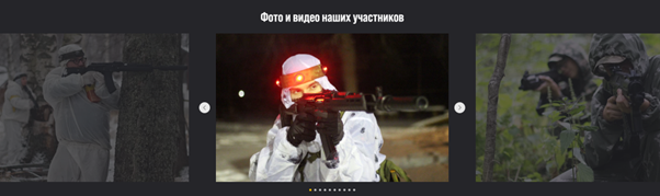 Далее идет блок с фотоотчетами с игр. При продвижении таких видов услуг никак не обойтись без живых фотографий.