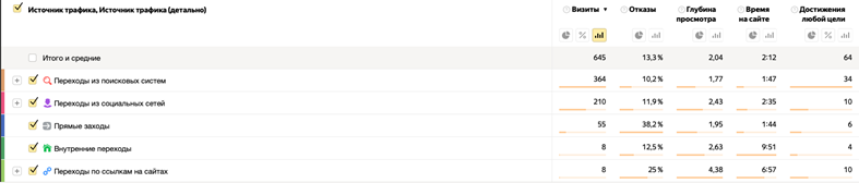 Даже без подключенного коллтрекинга мы получили 34 заявки из поисковых систем, конверсия сайта составила 9%.