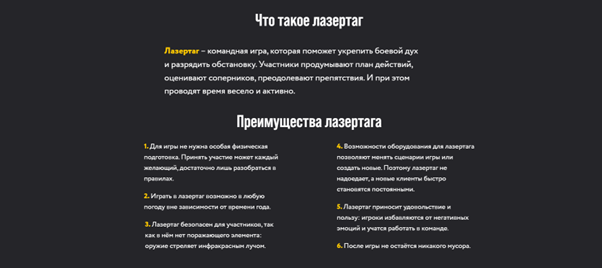 Отличительным преимуществом нашего клиента было наличие множества площадок для игр. Перед потенциальным клиентом это значимое преимущество, поэтому мы выделили данный раздел.