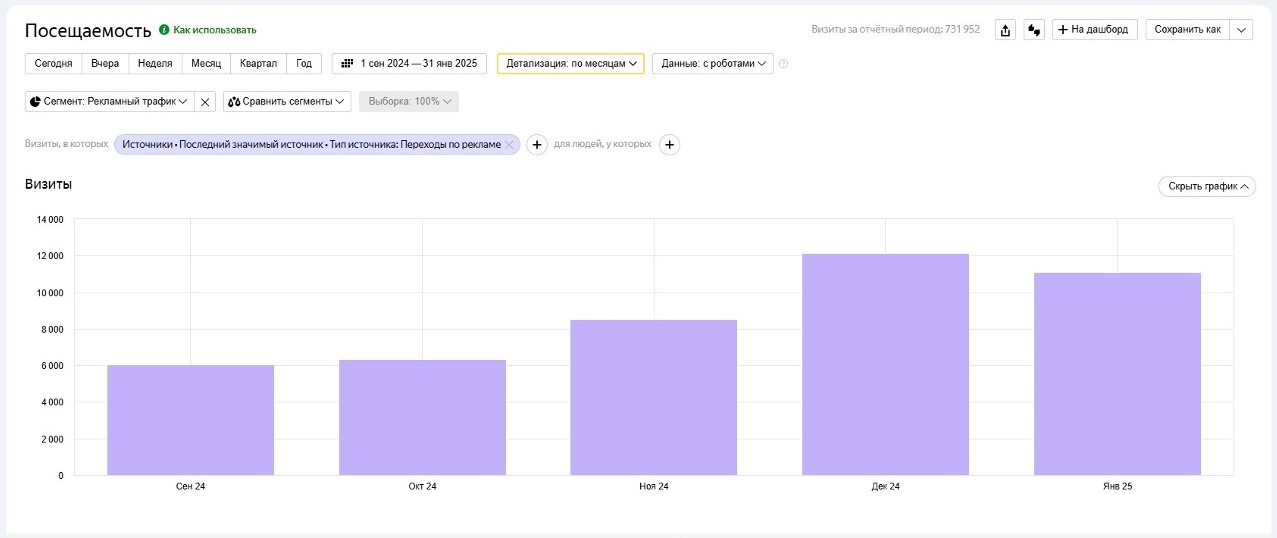 Показатель посещаемости сайта по источнику - рекламный трафик.