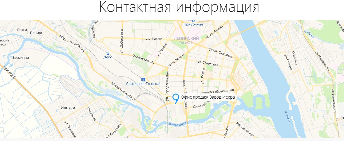 Внизу страницы разместили стандартный блок с контактами и картой, где отмечен основной офис компании.