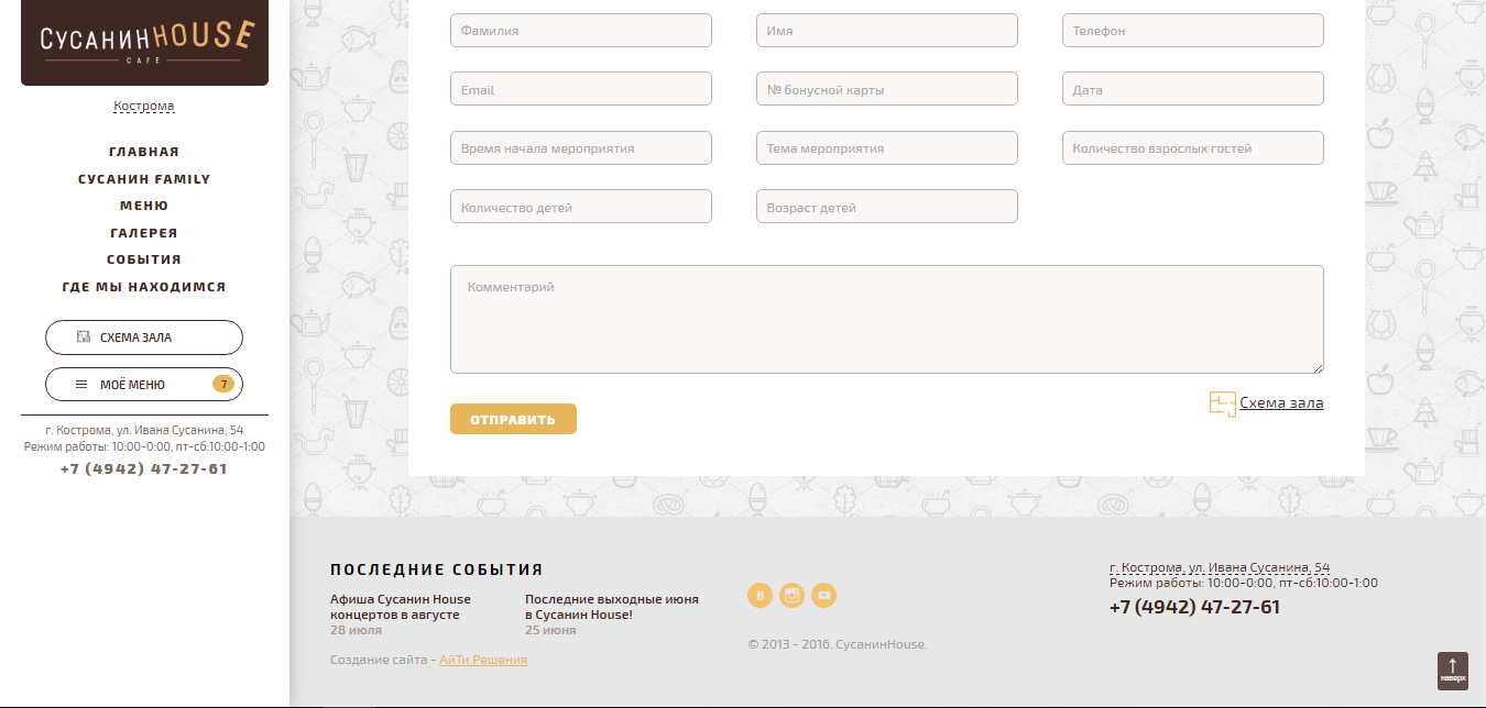 - У посетителей сайта "Сусанин House" появилась возможность удобно и быстро ознакомиться с меню, посмотреть фотографии блюд, сделать предзаказ на мероприятие, юбилей или любой другой праздник.