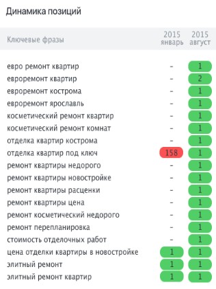 - Занять позиции в топ-10 по запросам, связанным с ремонтом. Регион продвижения - Кострома