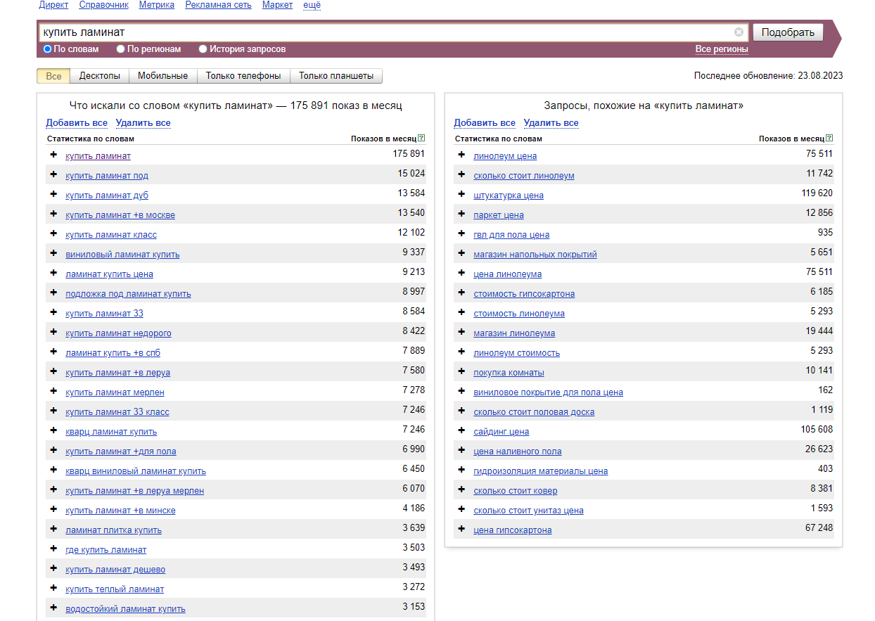 Одним из наиболее популярных инструментов для составления семантического ядра является Яндекс Вордстат. Этот инструмент предоставляет информацию о частоте запросов, связанных с определенными ключевыми словами, и позволяет оценить их популярность. Яндекс Вордстат также предоставляет синонимы и родственные запросы, что помогает расширить список ключевых слов.