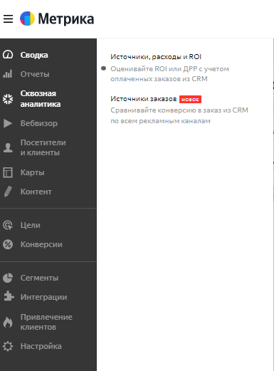 Сквозная аналитика - это методология сбора данных из нескольких систем. В Метрике она собирает данные из отчетов и CRM-системы. Это необходимо для того, чтобы понять, сколько продаж генерируют различные каналы, такие как контекстная реклама, публикации в СМИ, таргетинг "ВКонтакте" и другие.