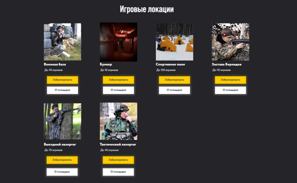 Отличительным преимуществом нашего клиента было наличие множества площадок для игр. Перед потенциальным клиентом это значимое преимущество, поэтому мы выделили данный раздел.