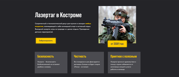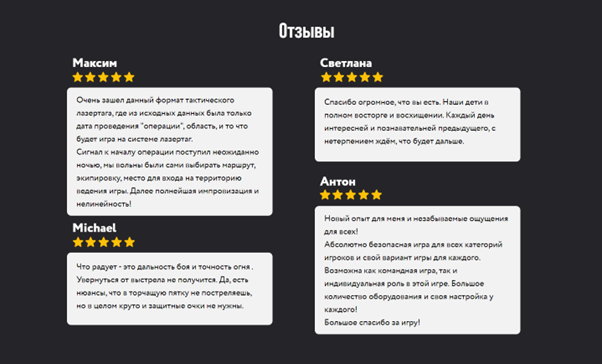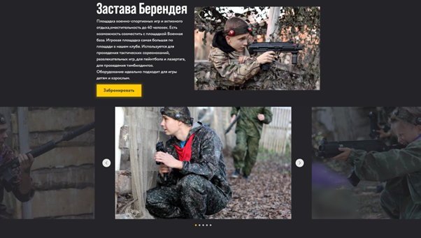 Далее идет блок с фотоотчетами с игр. При продвижении таких видов услуг никак не обойтись без живых фотографий.