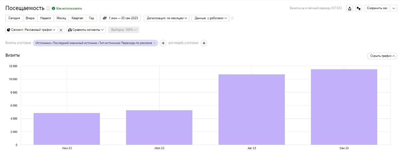 Показатель посещаемости сайта по источнику - рекламный трафик.