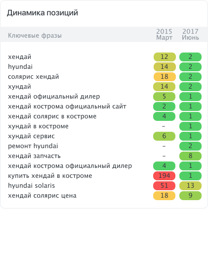 Особенность проекта - продвижение компании с уже устоявшейся историей. В данном случае, такой сайт, специализирующийся на продаже автомобилей, может воспользоваться своим опытом и репутацией для дальнейшего укрепления своих позиций в результатах поисковых систем.