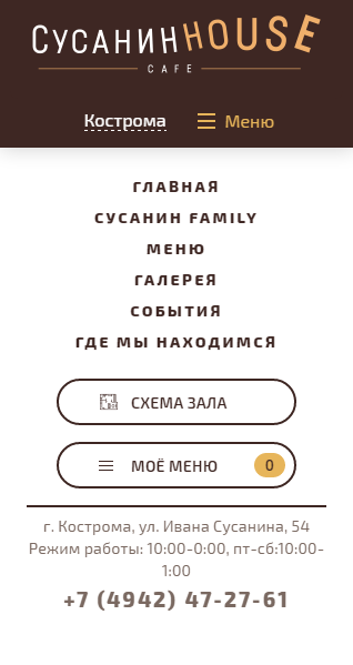 - У посетителей сайта "Сусанин House" появилась возможность удобно и быстро ознакомиться с меню, посмотреть фотографии блюд, сделать предзаказ на мероприятие, юбилей или любой другой праздник.